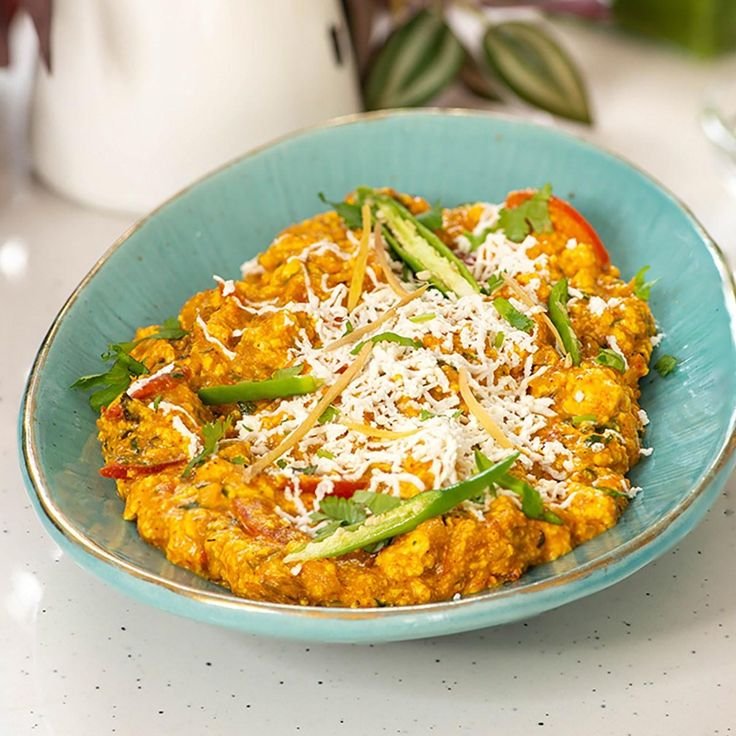 Paneer Bhurji – crumbled paneer sautéed with onions, tomatoes, and spices for a flavorful, hearty dish.